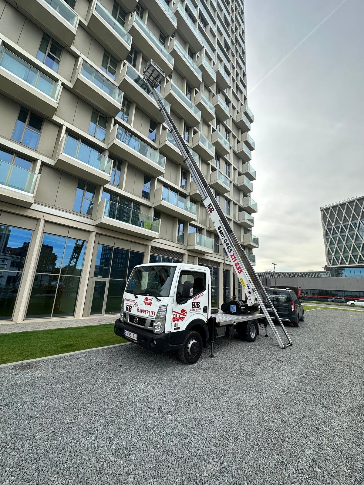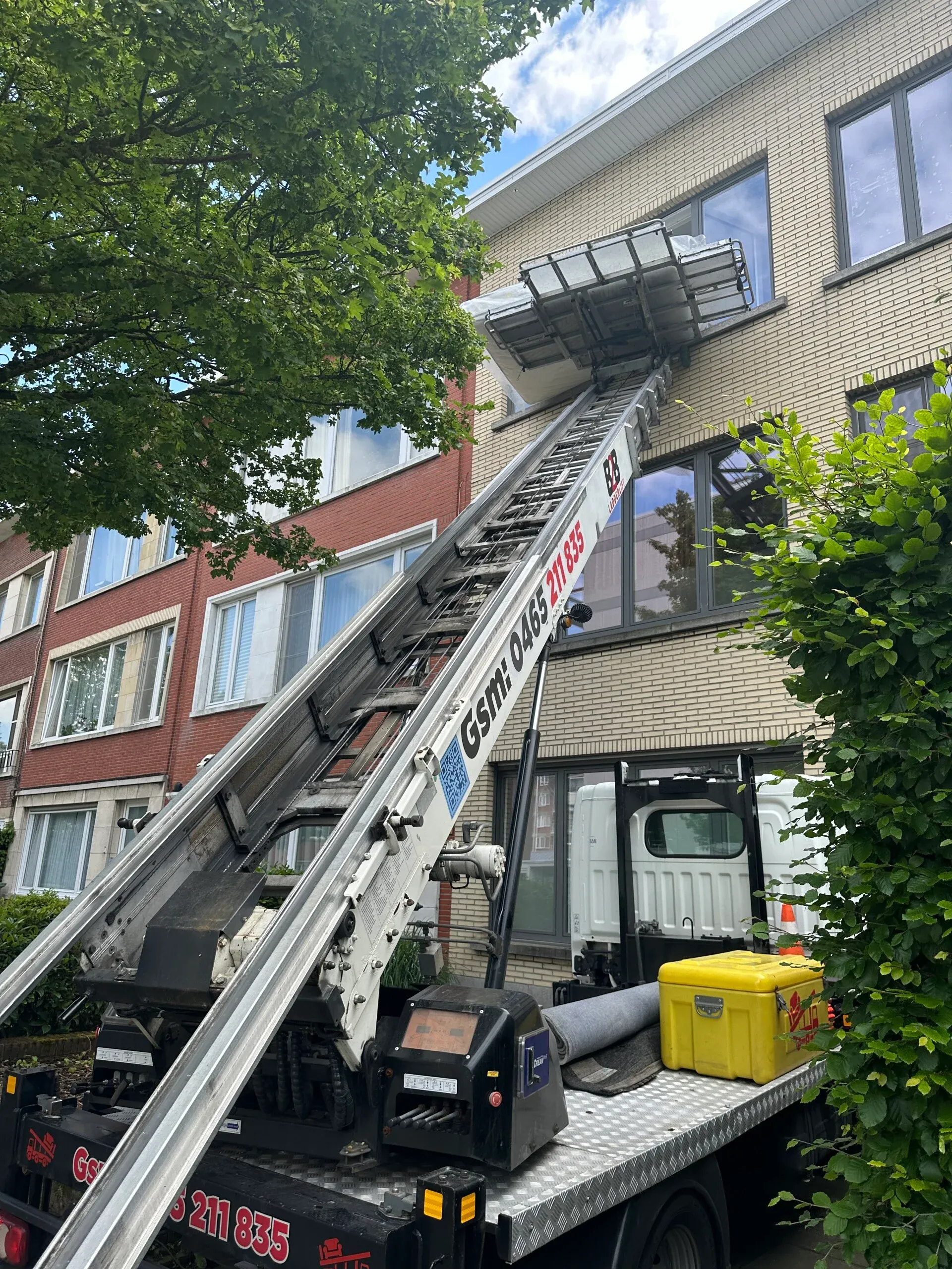 Met een ladderlift van B2B Ladderlift verplaats je alles snel en veilig via buiten. Onze ladderlift met ervaren operator brengt je spullen vlot naar boven of beneden, zonder gesleur en zonder risico op schade.